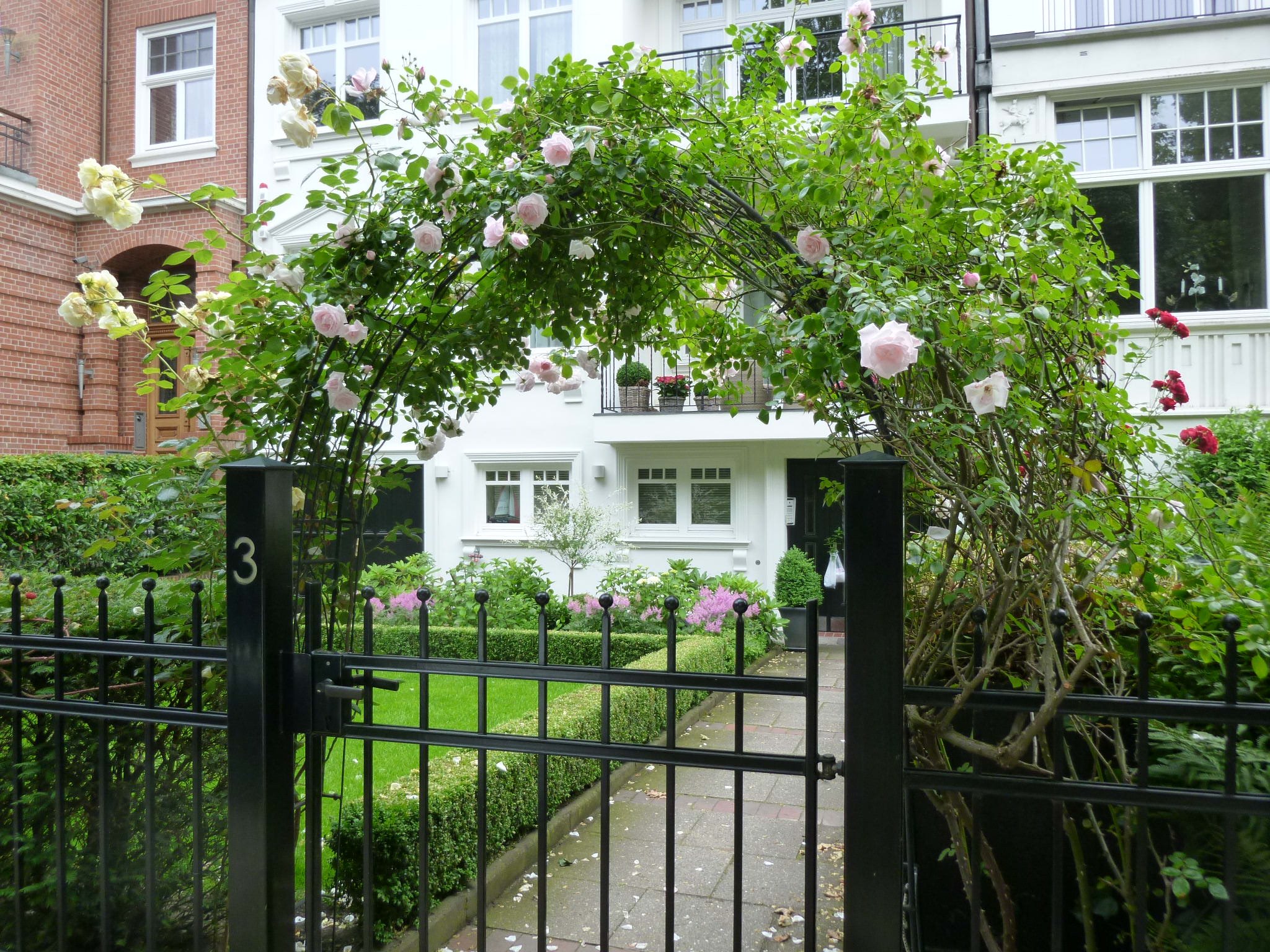 Das sehr gepflegte Haus / mit weißer Putzfassade und Stukkato Dekor befindet sich in zentraler und bester, ruhigen Lage von Hamburg-Harvestehude, einem beliebten und sehr gefragten Stadtteil Hamburgs, nur 2 Minuten zur Außenalster.